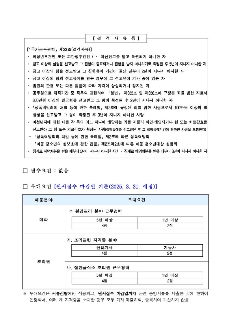 📋 주요 직무 (미화원 & 조리원)