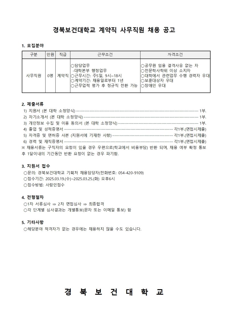 경북보건대학교 교직원 채용공고 분석! 합격 자기소개서 작성법 & 자소서 첨삭 대필 후기
