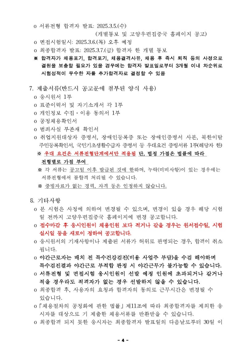 고양우편집중국 우정실무원 기간제근로자 채용: 합격 자소서 작성법 & 서류 합격 후기