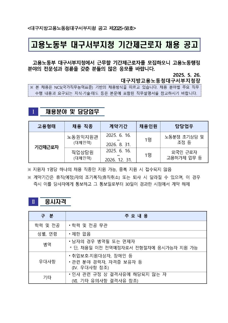 고용노동부 대구서부지청 기간제근로자 채용, 합격 자소서 첨삭/대필 후기 & 서류합격 전략!