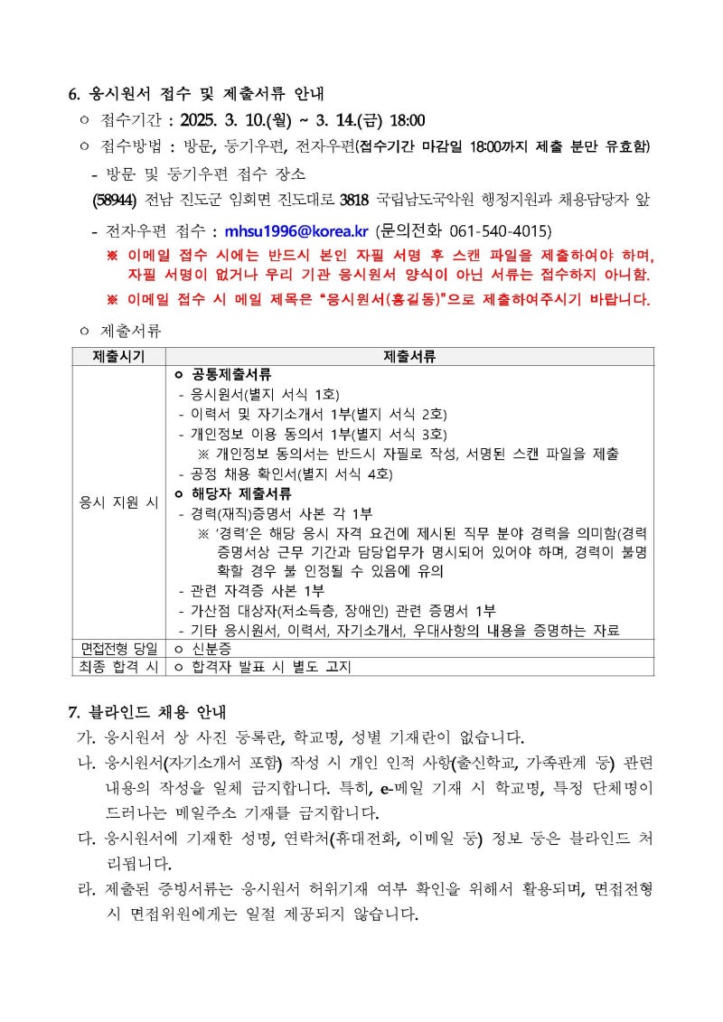 국립남도국악원 미화원 조리원 공무직근로자 채용, 서류합격 자기소개서 작성법 및 첨삭/대필 후기