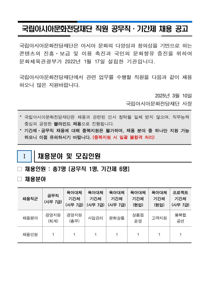 이번 채용은 사무직 7급, 공무직 7급, 사업관리, 문화상품, 상품점운영, 고객지원, 융복합공연 등 정말 다양한 직무에서 인재를 모집했는데요. 각 직무별 주요 업무를 간략히 살펴볼까요? 😊