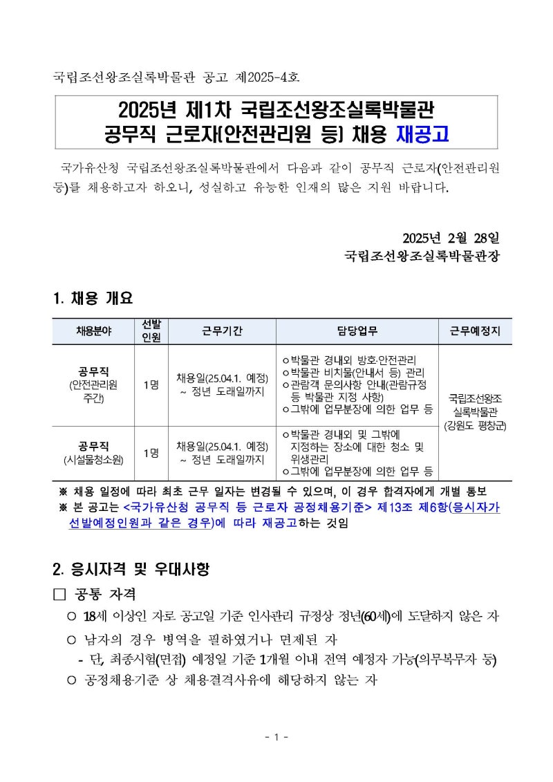 국립조선왕조실록박물관 공무직 채용! 안전관리원·시설물청소원 자소서 항목 완벽 분석 및 작성 전략