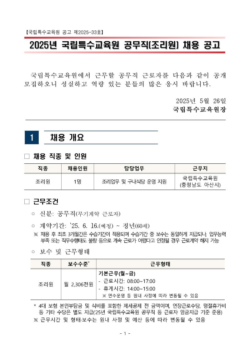 🎯 국립특수교육원 조리원 공무직근로자, 주요 직무 내용은?