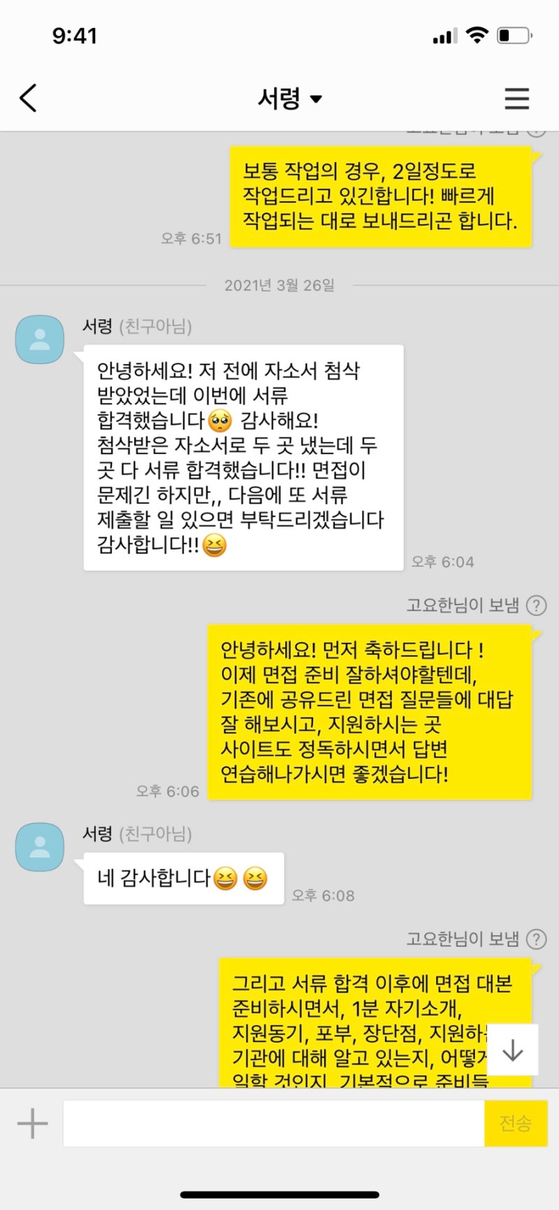 저는 자기소개서 첨삭 및 대필, 면접 컨설팅 등 취업 관련 다양한 서비스를 제공하고 있습니다.