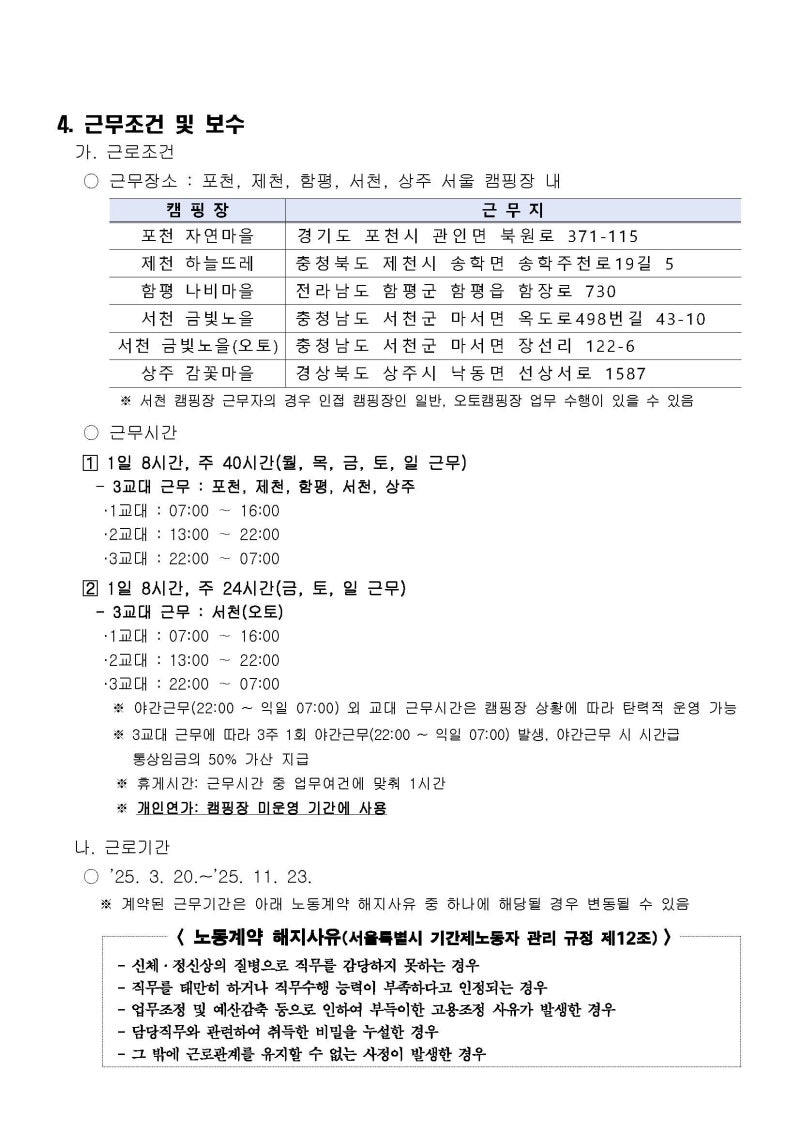 - ✅ 주요 사업: 캠핑장 시설 운영 및 유지보수, 환경 관리, 여가 프로그램 개발 및 운영, 이용객 안전 관리