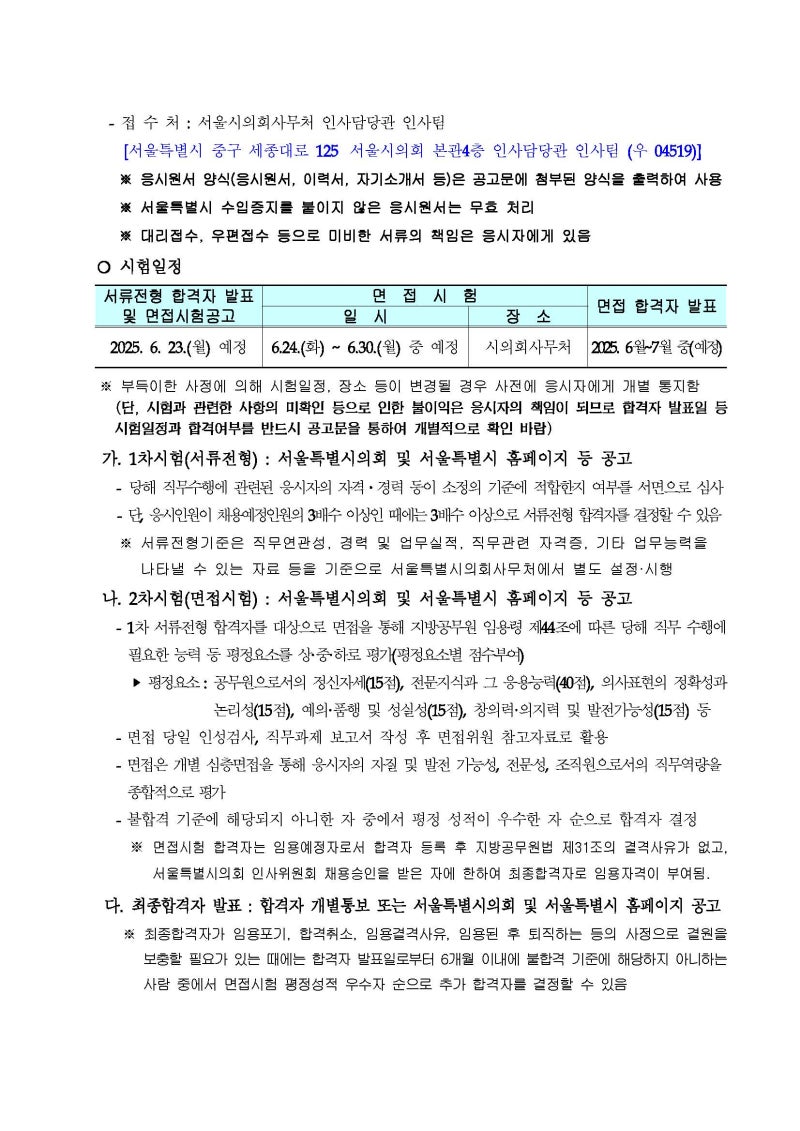 - ✅ 인재상: 전문성을 바탕으로 시민 중심의 의정활동을 지원하고, 변화와 혁신을 추구하며 소통과 협력으로 성과를 창출하는 인재