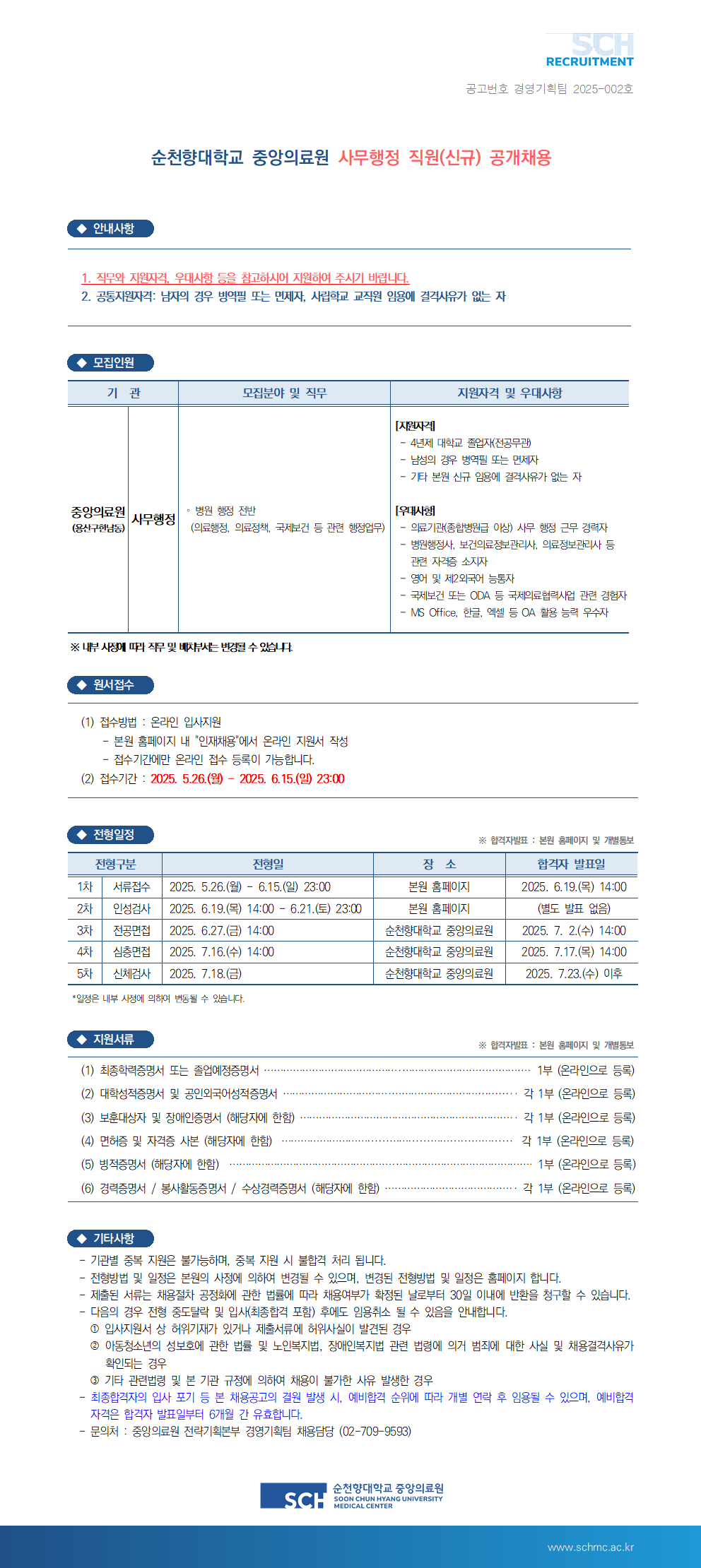순천향대학교 중앙의료원 사무행정 채용공고, 합격 자소서 첨삭 대필 성공 후기 및 작성법