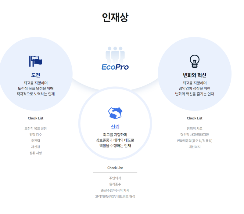 - 인재상: 전문성, 도전 정신, 협력, 책임감