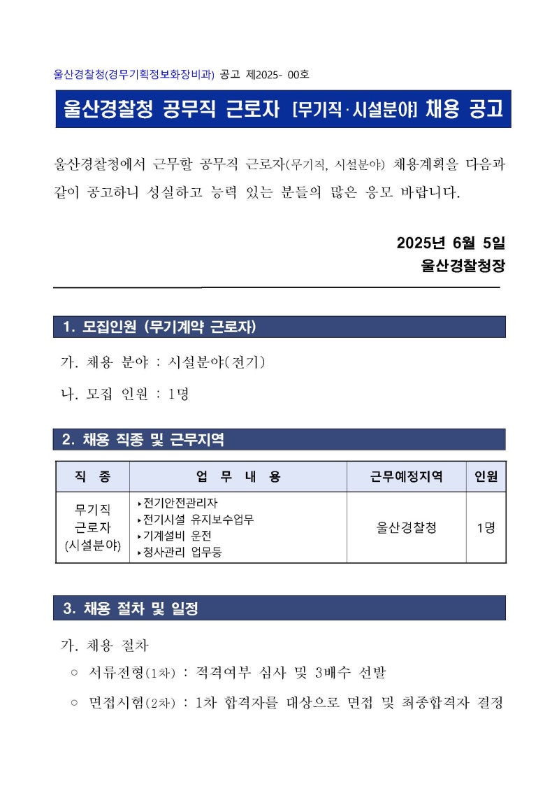 울산광역시경찰청 시설관리원 전기직 채용공고! 합격 자기소개서 첨삭 & 자소서 문항 분석 노하우 공개!