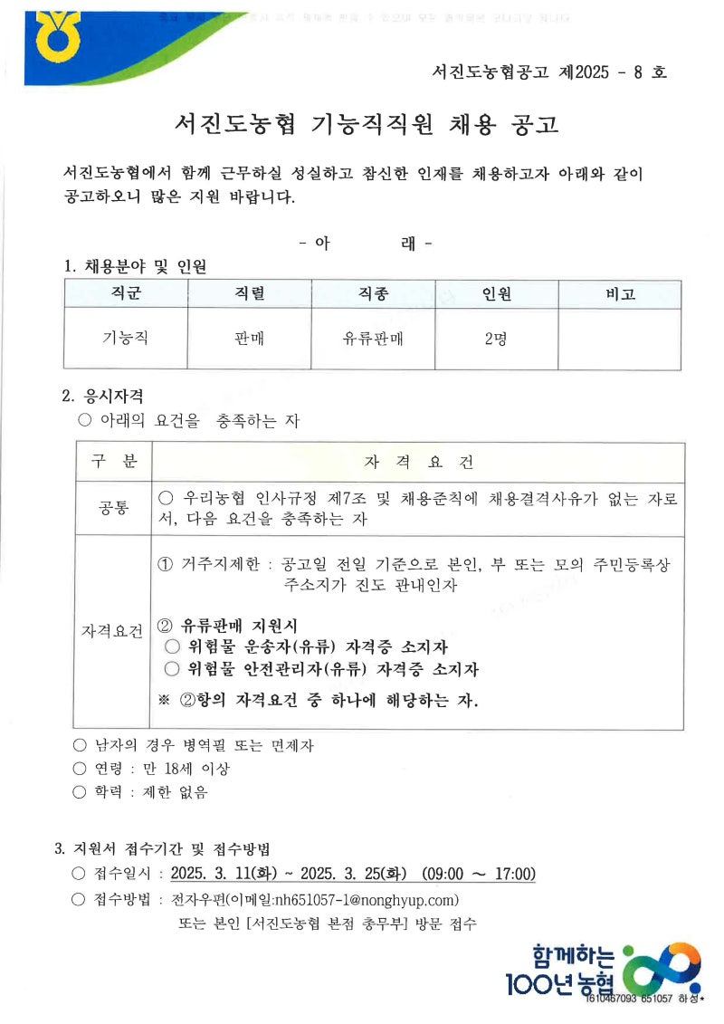진도군 서진도농협은 전라남도 진도군 서남부 지역의 농업인과 지역사회 발전에 이바지하는 핵심적인 금융 및 경제사업 협동조합입니다. 🌿 단순한 금융기관을 넘어, 조합원들의 삶의 질 향상과 소득 증대를 위해 다양한 사업을 펼치고 있어요. 상호금융을 통한 자금 지원은 물론, 농산물 판매, 영농자재 공급, 그리고 이번 채용과 관련된 유류판매 사업까지! 지역민의 생활과 밀접하게 연결된 다각적인 사업을 통해 지역 경제 활성화에 기여하고 있답니다. 특히 유류판매 기능직은 지역민의 편리한 생활을 지원하는 중요한 역할을 하고 있죠! ⛽