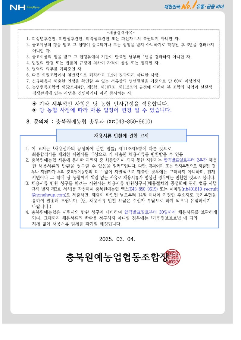 충북원예농협 마트판매·가공공장·기술기계 기능직 5급 채용공고! 서류합격 자소서 쓰는 법 & 첨삭 후기