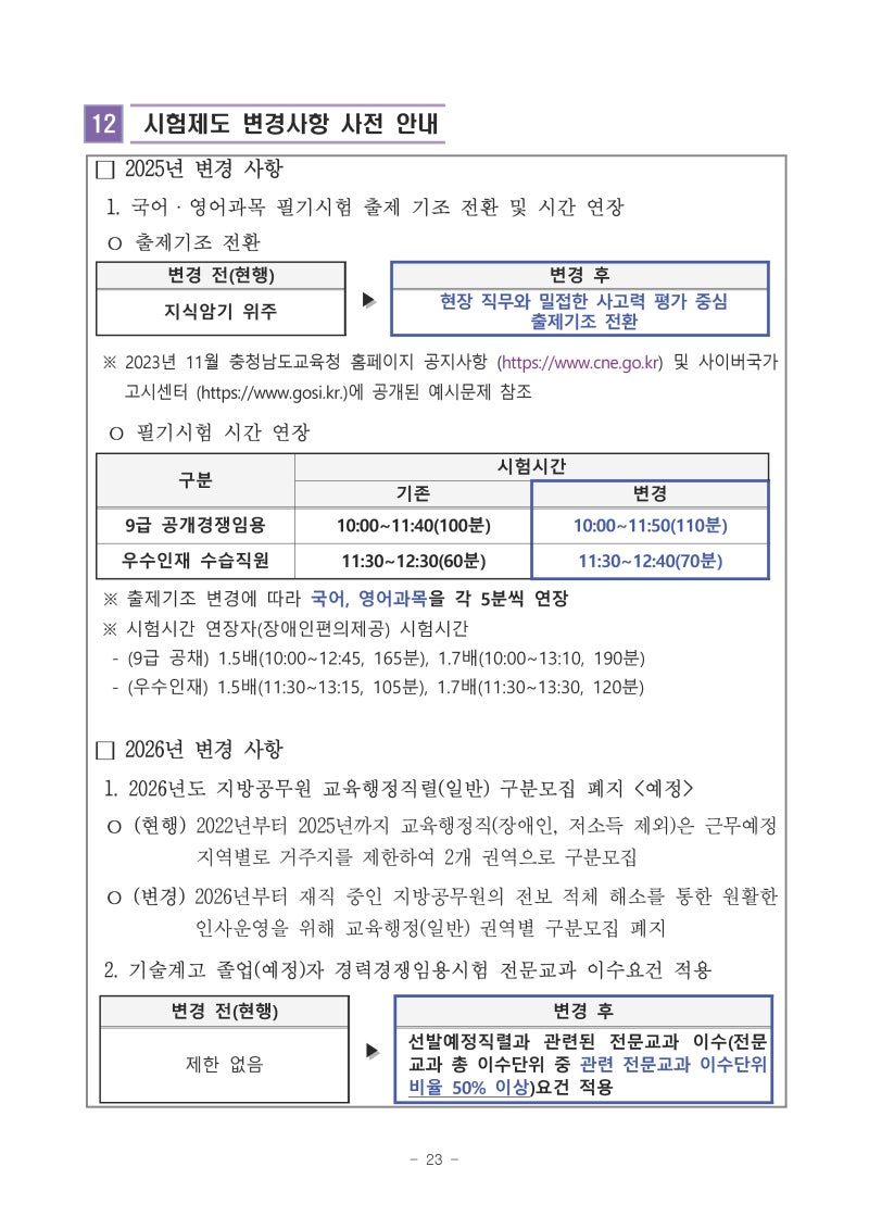 충청남도교육청 지방공무원(행정직) 주요 직무 살펴보기