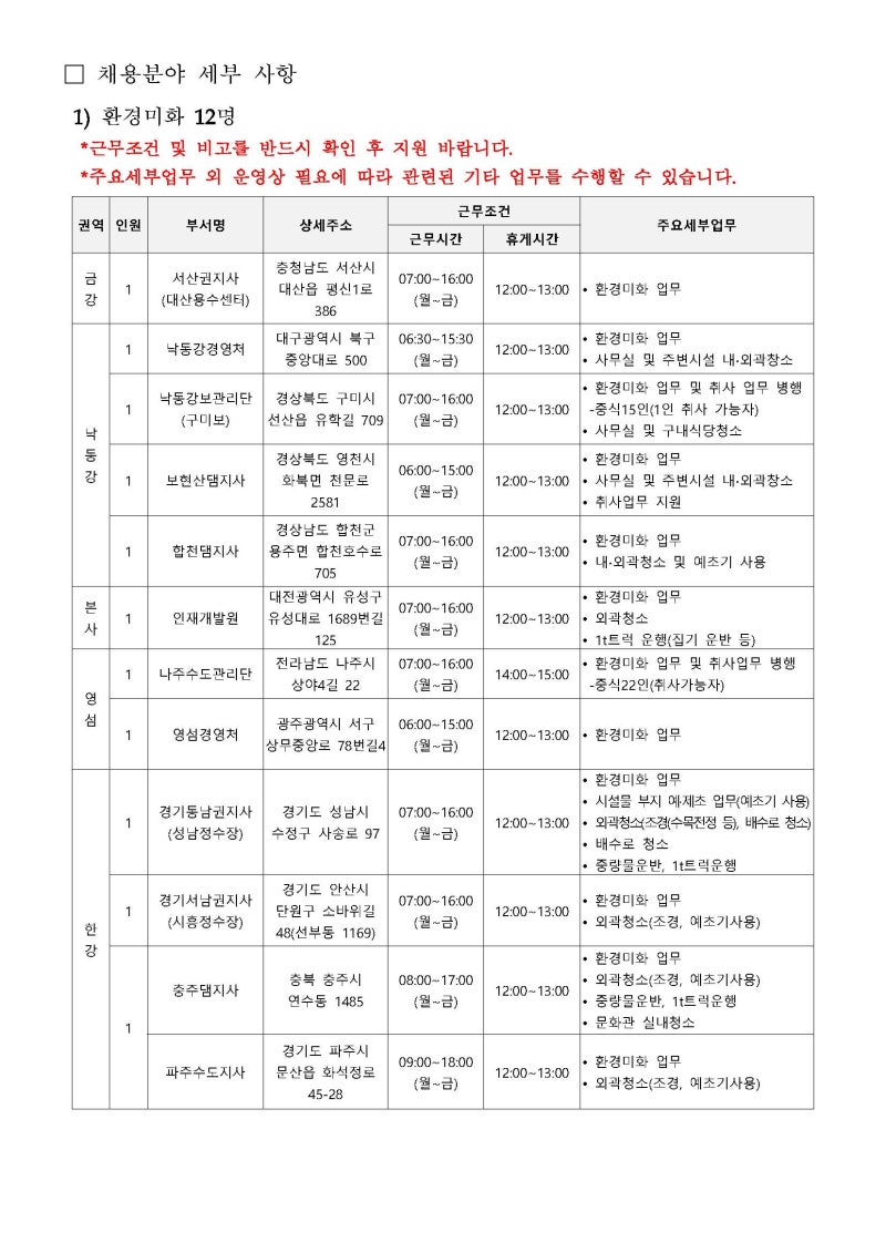 이번 케이워터운영관리 일반직 직원 채용은 정말 다양한 직무를 포함하고 있었어요. 주요 직무 내용을 간략히 살펴볼까요? 😊
