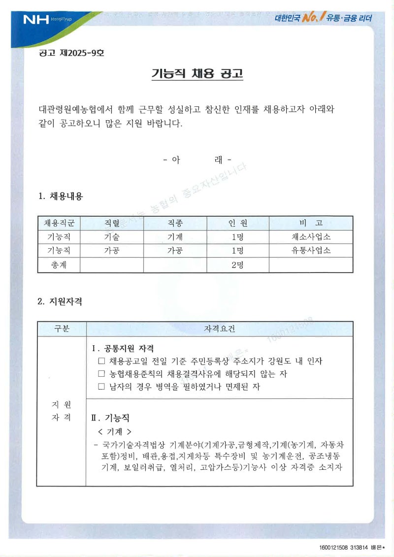 평창군 대관령원예농협 기계/가공직 5급 채용! 합격 자소서 작성법 & 자소서항목 완벽 분석 (첨삭/대필 후기)