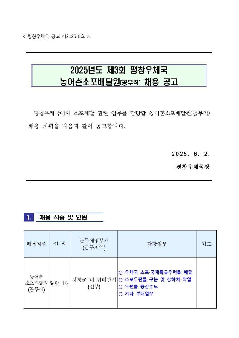 평창우체국 농어촌소포배달원 공무직 채용: 합격 자기소개서 자소서 첨삭 대필로 서류합격!
