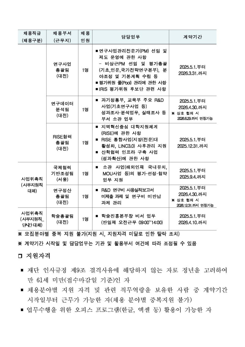 - 주요 사업: 기초연구지원 사업, 학술연구지원 사업, 국제협력 사업, 연구윤리 및 성과확산 사업 등
