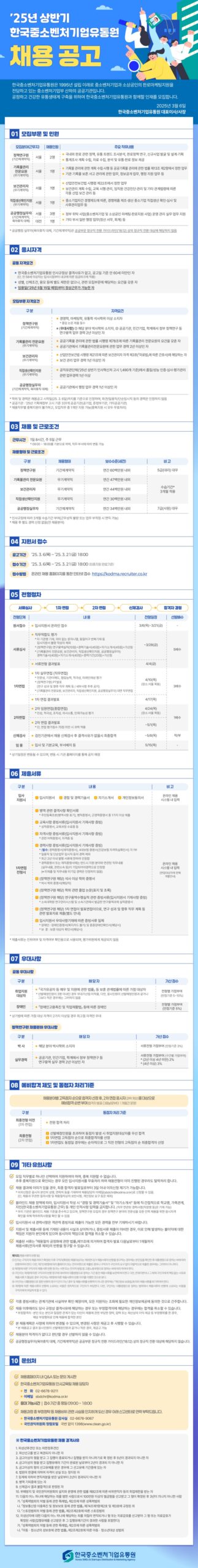 - ▲ 정책연구원: 중소벤처기업 관련 정책 및 사업 기획/연구, 산업 동향 분석, 보고서 작성, 대외 협력 및 교류 업무