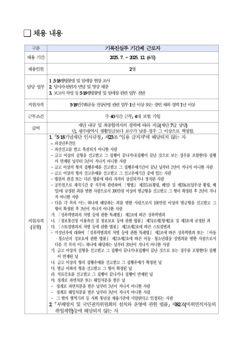 5·18기념재단 기록진실부 기간제근로자 직무는?