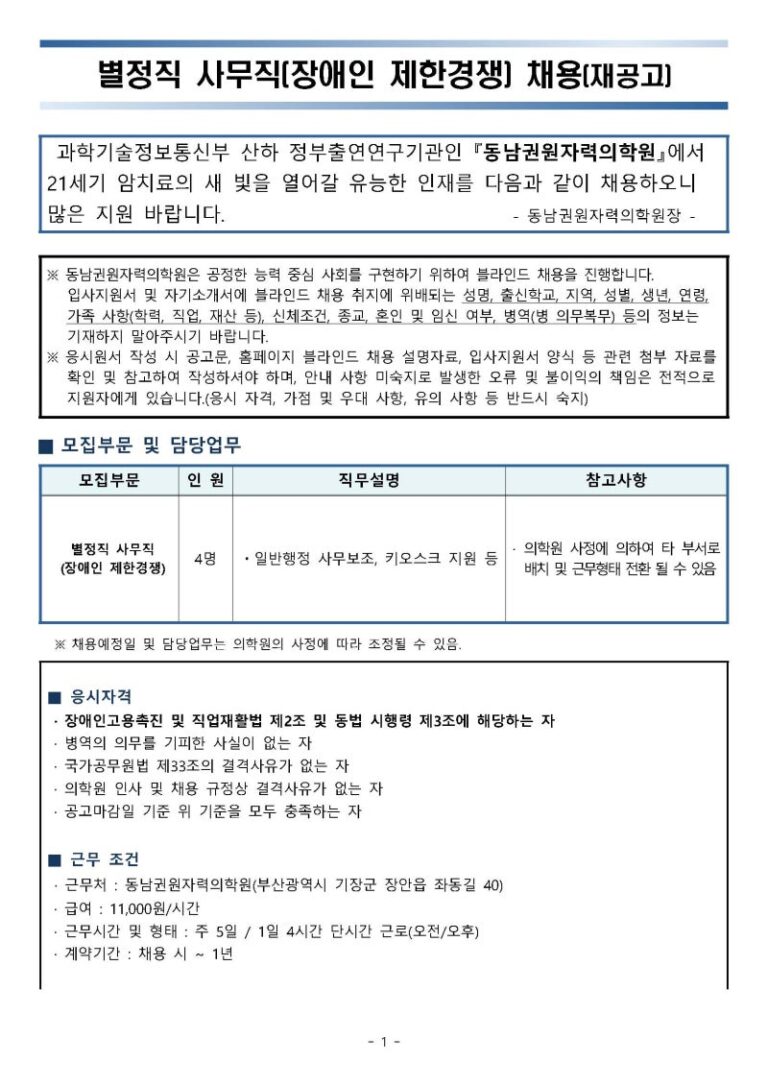동남권원자력의학원 별정직 사무직 채용공고! 서류합격 자소서 첨삭/대필 성공 후기 🚀