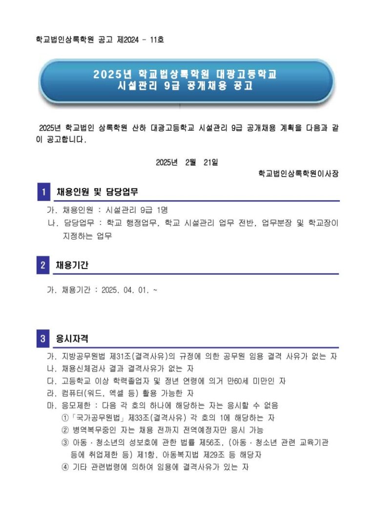 부산광역시교육청 대광고등학교 시설관리 9급 채용공고! 합격 자기소개서 작성법 & 첨삭 후기 📝