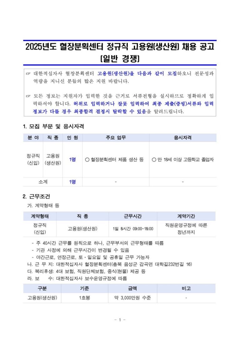 대한적십자사 혈장분획센터 고용생산원 정규직 자소서 합격 후기: 문항 분석 & 작성법 💡