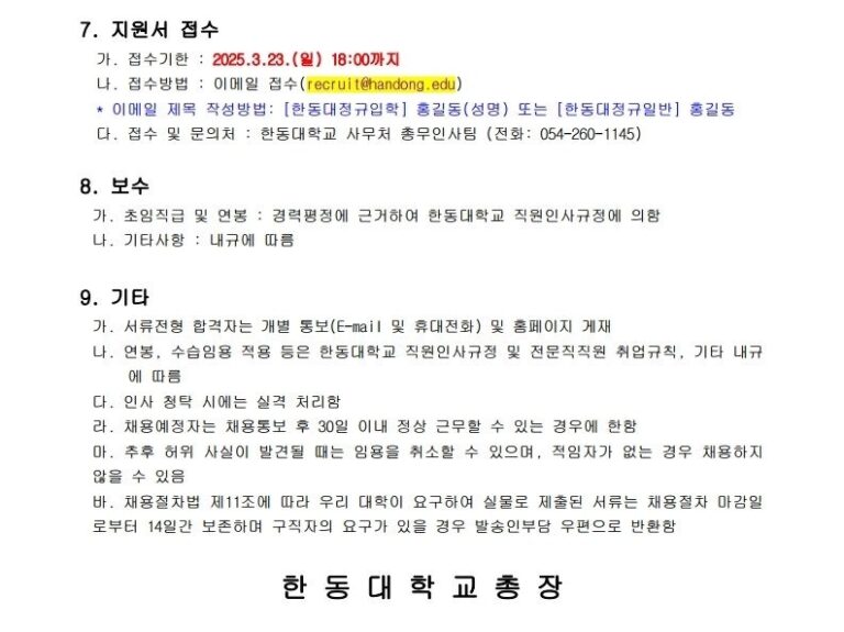 한동대학교 교직원 채용공고, 서류합격 부르는 자기소개서 첨삭 대필 성공 후기!