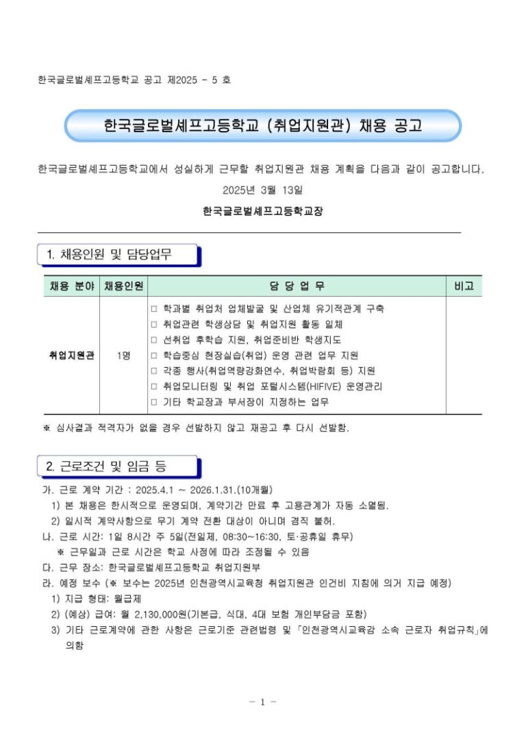 인천글로벌셰프고 취업지원관 채용공고, 합격 자소서 작성법과 서류합격 첨삭 대필 후기!
