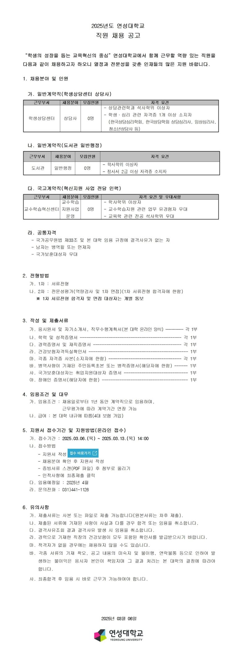 연성대학교 교직원 채용공고 자소서 항목 분석 & 합격 자기소개서 쓰는 법