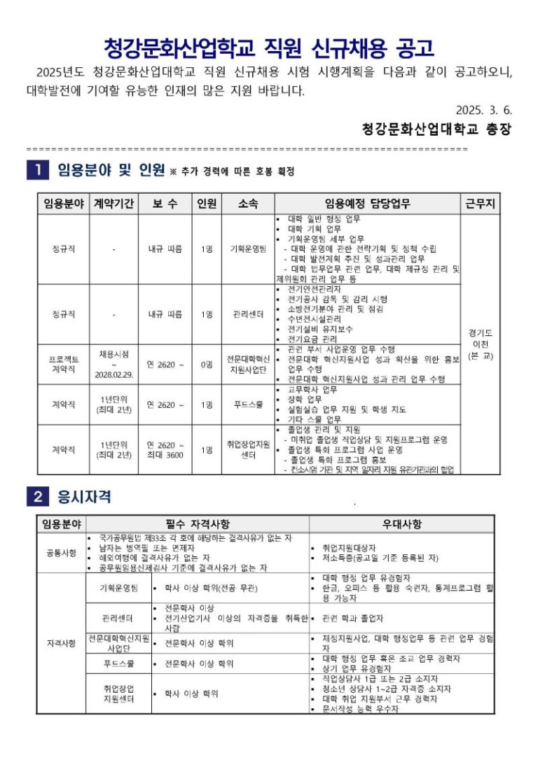 청강문화산업대학교 교직원 자기소개서 작성법: 서류합격 자소서 예시 & 첨삭 대필 후기