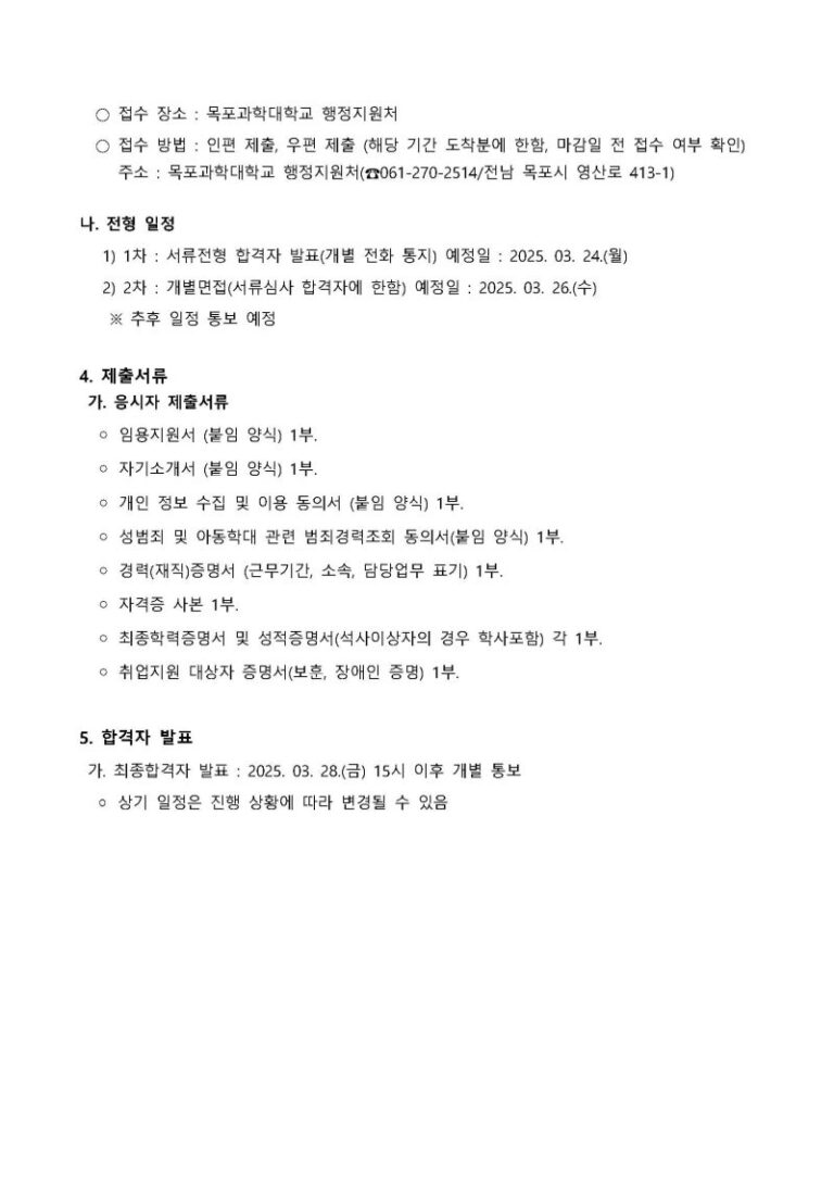 목포과학대학교 교직원 채용공고: 서류 합격 자소서 작성 노하우와 합격 후기 공개! 📝