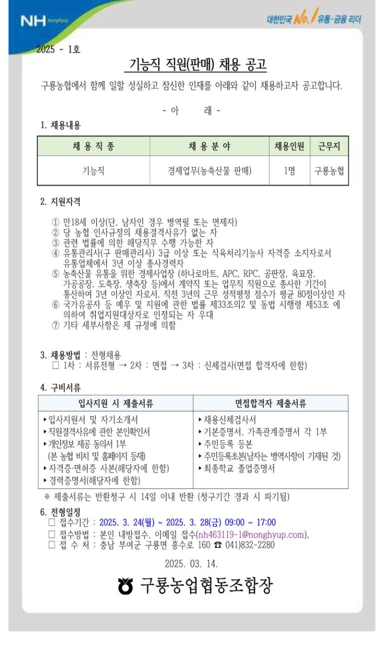 부여군 구룡농협 농축산판매 기능직 5급 채용, 합격 자소서 작성 가이드와 첨삭 후기!
