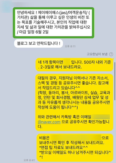 제이에이에스 JAS 여객운송직 합격 자소서 비법 공개! 자소서 대필 후기