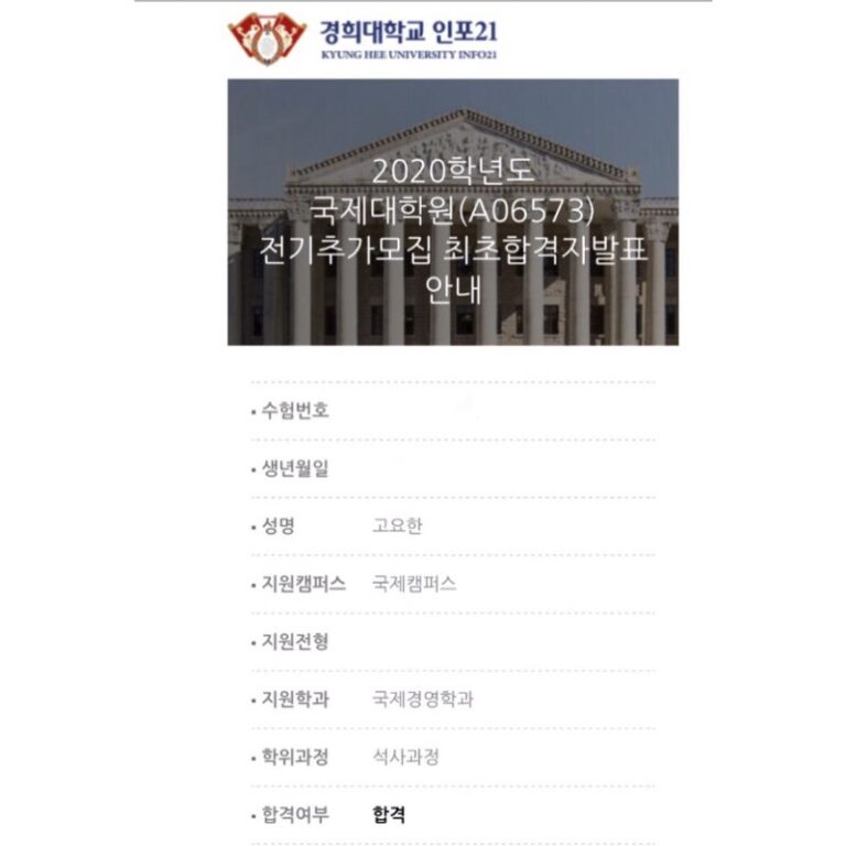 합격 후기: 2020 경희대학교 국제대학원 합격 전략 & 자기소개서/학업계획서 첨삭 비법 공개