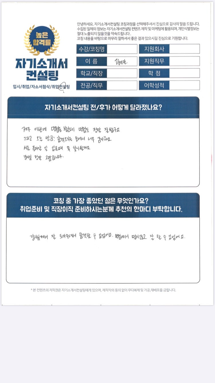 이직 성공률 UP! 경력직 자기소개서 첨삭 후기: 하이트진로 합격 비법 공개