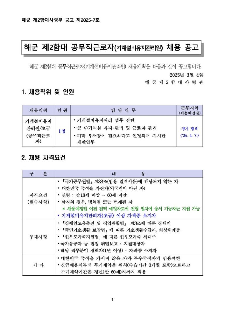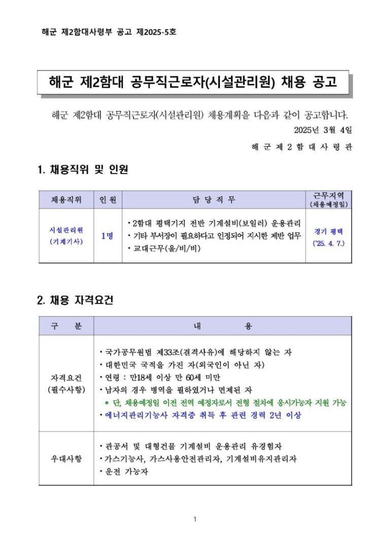 해군 제2함대사령부 기계설비유지관리원 채용공고, 합격 자소서 첨삭 및 서류합격 전략 분석! 📝