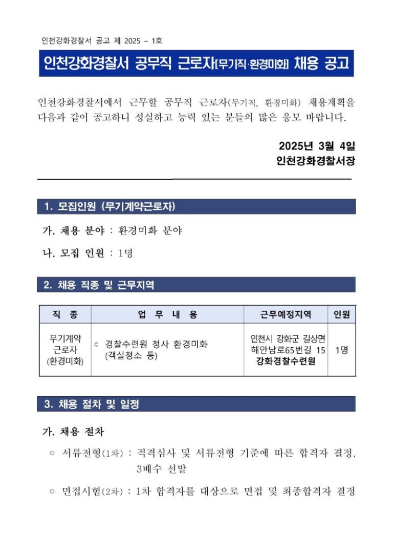합격 자소서 비법! 인천강화경찰서 환경미화원 공무직 채용, 서류합격 후기 & 자소서 문항 분석